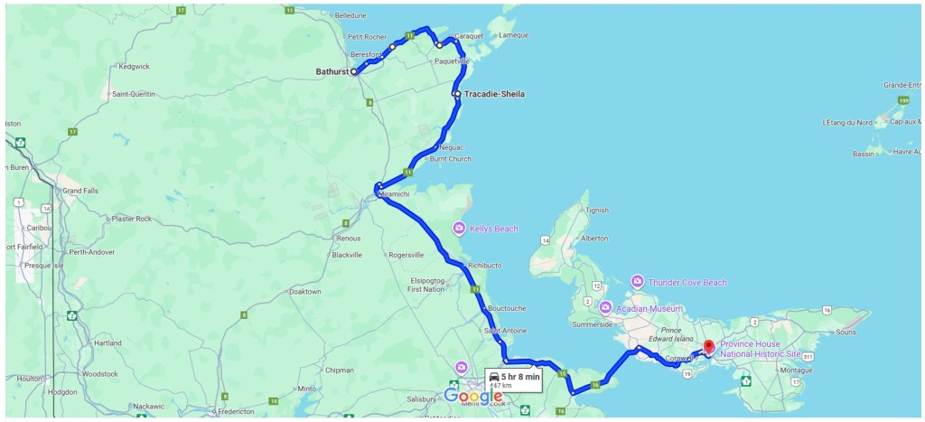 📸 Map with journey from Bathurst, NB to Prince Edward Island